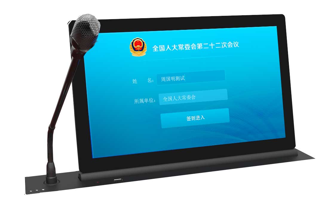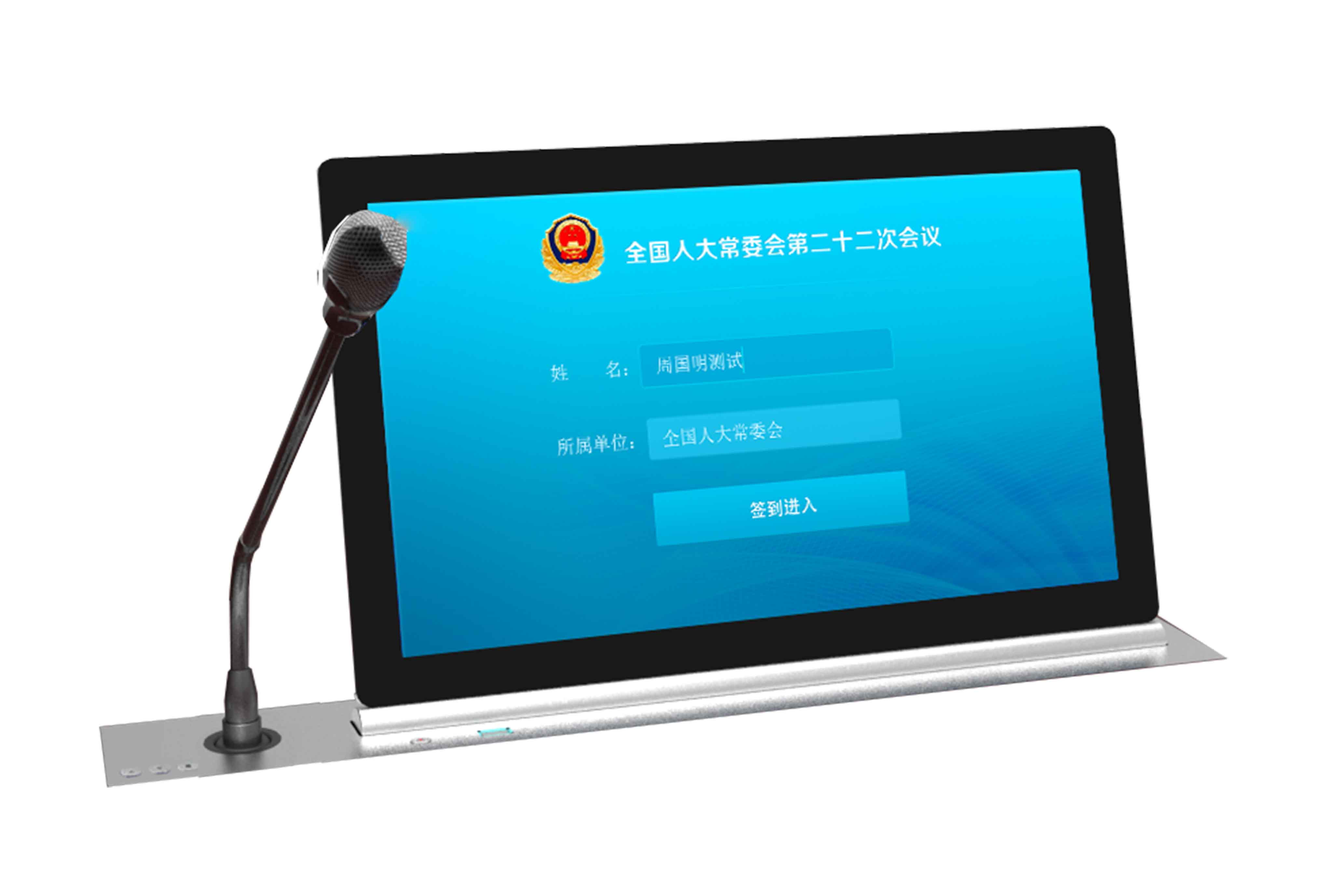 |  为解决传统会议升降屏功能单一、不能交互等局限,我公司研发出了双面无纸化超薄触控一体话筒升降终端(无纸化升降终端)产品。该系列产品以其出色的交互性、丰富的会议功能、绝佳的用户体验,已然成为取代传统会议室升降产品的必然趋势。产品搭载18.5寸铝合金磨砂超薄一体外壳,表面处理为喷砂阳极氧化,宽屏无边框设计;支持电动调节屏体远近及仰角,显示器翻转最大范围0-75度可调,显示器支架最大范围0-75度可调,支持一键显示器复位功能。话筒采用手拉手会议话筒,具备自动扶正功能。内置会议终端机windows7(或windows8可选)操作系统,CPU为双核1.8G,4G内存,120G SSD固态硬盘,接口AC220V、RJ45、USB2.0、COM接口;具有电源保护功能,支持RS-485通讯协议,支持中控实现远程控制升降及仰角,升降器桌面面板预设USB信息接口,支持文档资料导入导出。