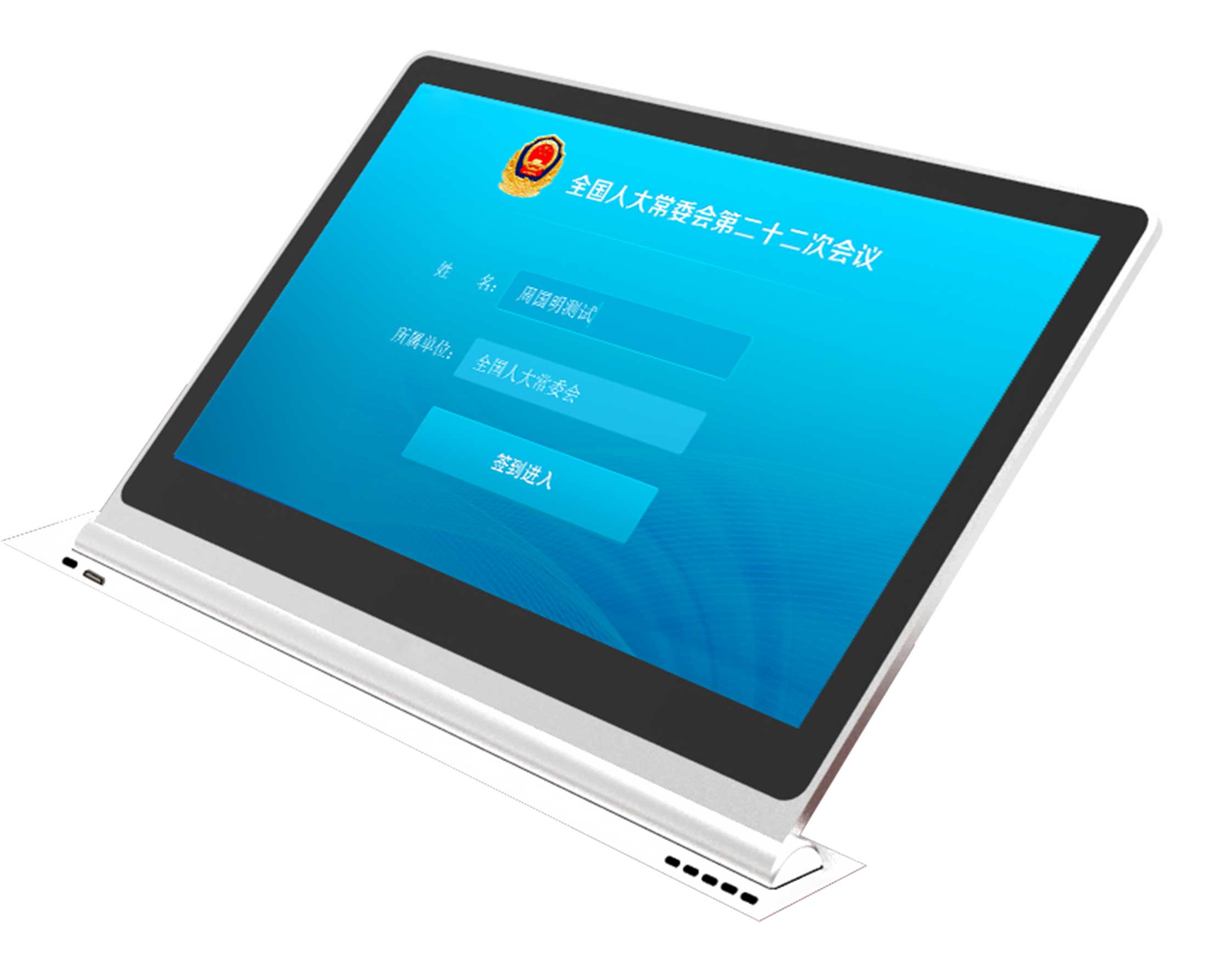 为解决传统会议升降屏功能单一、不能交互等局限,我公司研发出了双面无纸化超薄触控一体升降终端(无纸化升降终端)产品。该系列产品以其出色的交互性、丰富的会议功能、绝佳的用户体验,已然成为取代传统会议室升降产品的必然趋势。产品搭载17.3寸铝合金磨砂超薄一体外壳,表面处理为喷砂阳极氧化,宽屏无边框设计;支持电动调节屏体远近及仰角,显示器翻转最大范围0-45度可调,显示器支架最大范围0-45度可调,支持一键显示器复位功能。内置会议终端主机windows7(或windows8可选)操作系统,CPU为双核1.8G,4G内存,120G SSD固态硬盘,接口AC220V、RJ45、USB2.0、COM接口;具有电源保护功能,支持RS-485通讯协议,支持中控实现远程控制升降及仰角,升降器桌面面板预设USB信息接口,支持文档资料导入导出。