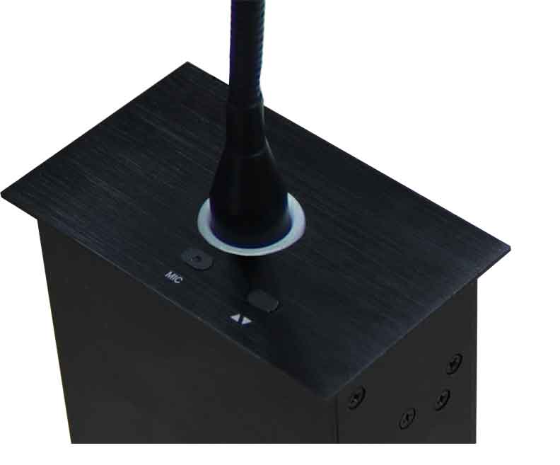 ◎ 在升降开关的控制下话筒的升降; ◎ 可通过通讯电缆与控制键盘或集控系统连接实现远程控制的统一升降或单独升降; ◎ 安装方便、操作简单; ◎ 外观造型高档优雅; ◎ 结构紧凑、美观、安装简易; ◎ 防尘设计,提升会议整洁度; ◎ 红外无线控制,使用更方便; ◎ 自动开关门功能; ◎ 选用进口名牌静音同步电机,表现更出众; ◎ 使用优质铝合金制造,品质更可靠; ◎ 麦克风下降自动捋直功能; ◎ 支持一键式升降; ◎ 支持远程集中控制升降。